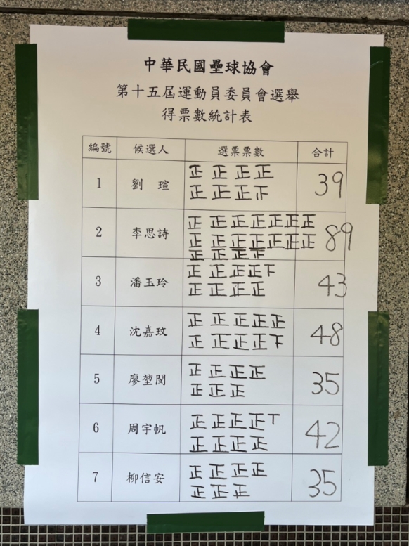 壘協_第15屆運動員委員會選舉 投(開)票報告表
